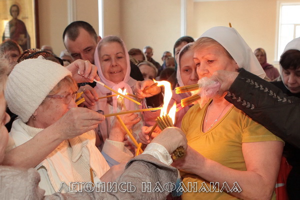 В понедельник Светлой седмицы, 16 апреля 2012 года, архиепископ Симбирский и Мелекесский Прокл встретил Благодатный огонь, привезенный из Иерусалима, в храме Трех Святителей на ул. Гончарова.