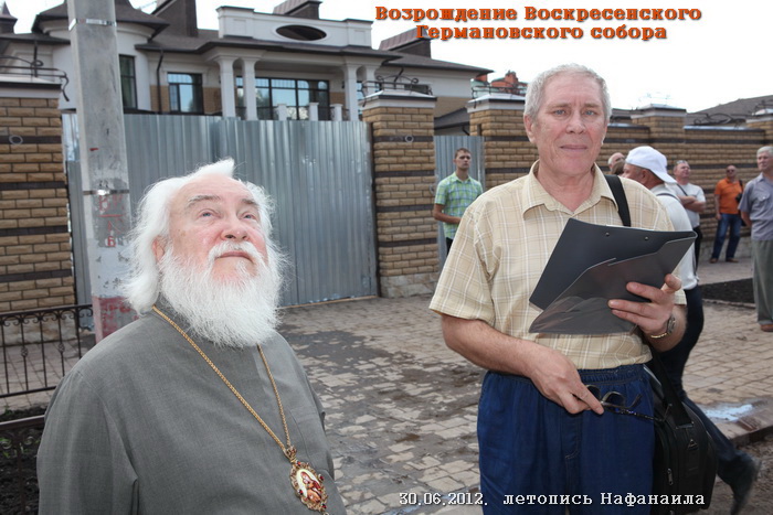 30 июня 2012 года на колокольню Воскресенской Германовской церкви, разрушенной в советские годы и вновь возведённой архиепископом Симбирским и Мелекесским Проклом, на высоту 57-ми метров подняли крест с куполом. В 12 часов дня владыка Прокл освятил крест многострадальной церкви, ныне кафедрального собора града Симбирска. В годы, когда храмы и монастыри в нашей стране были повсеместно закрыты, разрушены, отобраны Божии дома, эта церковь была переоборудована под областной архив. Колокольня разрушена и на её месте построено неказистое, как само то время, административное здание из силикатного кирпича. В течение восемнадцати лет архиепископ Прокл через множество инстанций и судов добивался у администрации области вернуть храм епархии, законному владельцу. С превеликой неохотой, после очередного решения суда, власть была вынуждена возвратить церковь законному владельцу, Русской Православной Церкви. С 2008-го года владыка ведет реставрационные и строительные работы по возрождению храма. Конечно, былого благолепия не вернешь, средств на ремонт и работы высокого качества и материалы у церкви нет. Утрачены былые роскошные фрески, украшавшие своды, купол и стены храма, в плачевном состоянии напольная мраморная плитка, раздробленная и местами полностью уничтоженная плиточная мозаика, никакого ремонта в архиве не было в течение нескольких десятилетий! Подвальные помещения завалены мусором и отходами, стены изъедены грибком и плесенью, оконные рамы сгнили,- таким было передано здание.