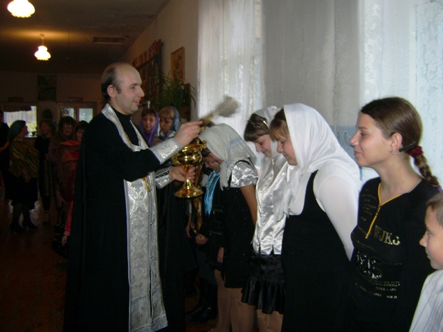 Благочинный Вешкаймского округа Симбирской епархии протоиерей Анатолий Капранов благословил родителей и их чад, сотрудников детского сада на радостное воспитание и обучение в новой группе. Батюшка подарил группе Казанский образ Божией Матери. Затем отец Анатолий освятил помещение новой группы, дети, родители и воспитатели молились вместе.