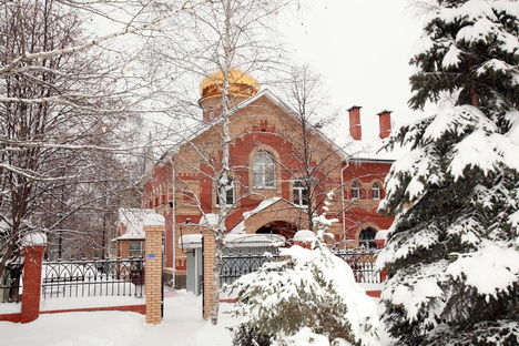 Громадный мощный, металлический каркас главного купольного свода стоит прямо у центрального входа в ограду церкви. Внушающее восхищение сложное инженерно-техническое сооружение очень скоро, дай Бог, украсится золотым облачением, и будет искриться на солнце среди заснеженных кружев высоких елей и белоствольных березок. К куполу, как кровеносные сосуды, тянутся электрические провода сварочного оборудования.