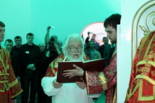 «Правильно сказано у святых отцов, что храм это небо на земле. И этот храм является отражением неба на земле. Дай Бог, чтобы этот храм послужил храмом обновления души. Храм мой храмом молитвы наречется. Сегодня мы в эти замечательные Пасхальные дни мы приобщаемся к этой Пасхальной радости, которую сотворил Господь, любящий Его.