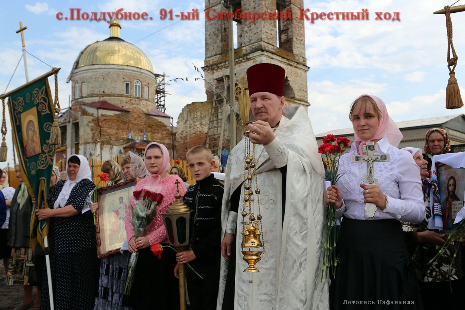 Крестный ход с Казанским Жадовским образом Божией Матери прибыл в село Поддубное. Настоятель местного прихода отец Виктор со всей семьей, главой администрации, многочисленными жителями села встречали паломников со святыней в центре села, недалеко от возрождаемого из руин храма Архангела Михаила.