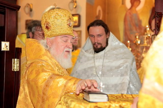 Нет, в нашем храме никогда еще не было архиерейской службы. Он просто посещал, осматривал храм. А служба это первая, великая. Мы очень ждем этого события, радуемся, переживаем, волнуемся, потому что в первый раз. Сегодня два ответственных события: освящение храма и хиротония нашего диакона Алексея Егорова во пресвитеры.
