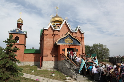 По-прежнему жара стоит страшная, градусов до 35-ти. Дождя нет давно, местные агрономы сокрушаются: урожай всех культур под угрозой засухи. Молебен служили у входа в церковь, перед началом которого настоятель обратился к пришедшим с проповедью об истории Казанской иконы.