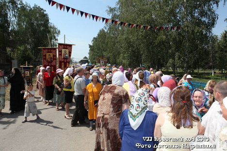 Пока мы находились в Верхнем Мелекесе паломники наблюдали торжественную процессию прощания с ветераном Великой Отечественной войны. В безымянной братской могиле под городом Ржевом, поисковики нашли семь тел павших воинов. Только один солдатский медальон был на останках одного из героев минувшей войны. Им и оказался уроженец села Верхний Мелекес. Воина отпели накануне и подобающими почестями проводили всем селом на местное кладбище в последний путь. Венки, большая красная с траурной каймой лента, цветы, оркестр, слезы и моментально осушающее эти маленькие соленые капельки благодарности на наших щеках,- палящее солнце над всеми нами.