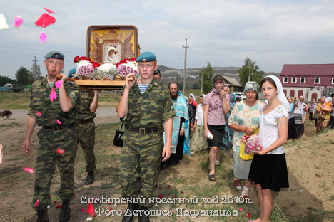 Основано поселение 67-мь лет назад, в годы Красного большевистского режима, поэтому здесь никогда не было церкви. Но, несмотря на долгую жизнь в стороне от церковной жизни, народ тянется к вере. И каждый год людей, встречающих образ Богородицы, приходит все больше. На главной площади поселка к иконе подошли и приложились несколько сотен человек, отец Никодим всех помазал.
