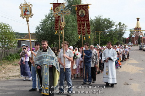 Отец Павел, несмотря на серьезное недомогание, шел вместе с нами несколько километров по всему селу. Радость наполняла наши сердца и усталости не чувствовалось совсем. Всегда жизнерадостный и приветливый настоятель подбадривал всех и неутомимо вел в свой большой великолепный храм.